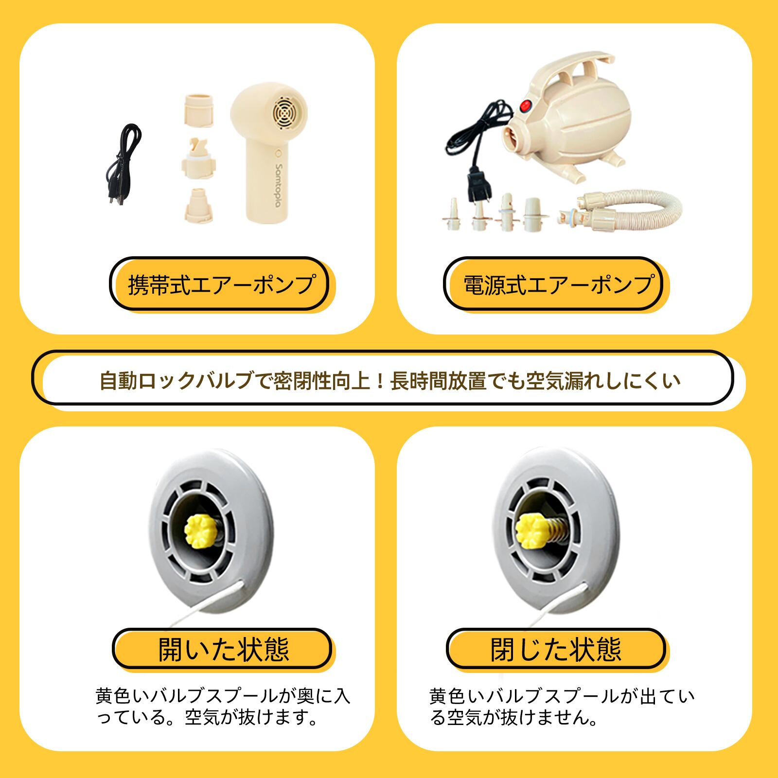 ・エアーポンプ2種類があり、使用するシーンに応じて選択できます。