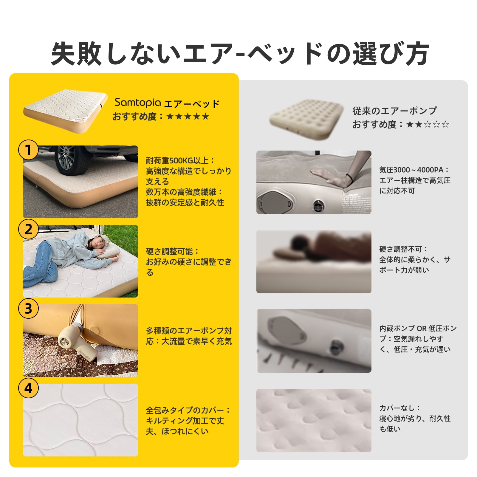 【従来のエアーベッドを使ってみたこんなことで困ったことはありませんか。】