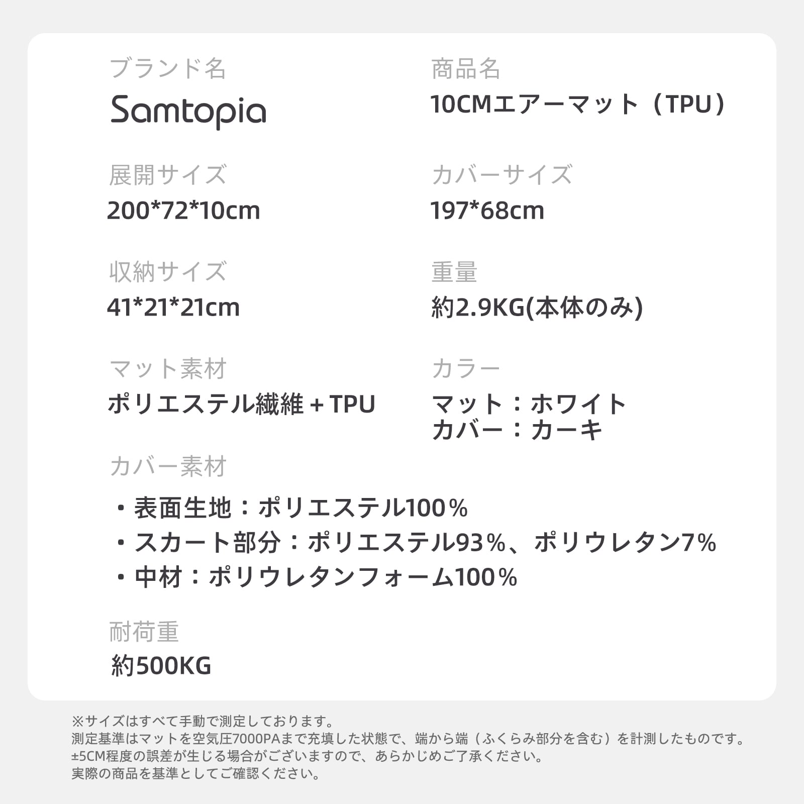 * エアーベッド素材:ポリエステル繊維+TPU