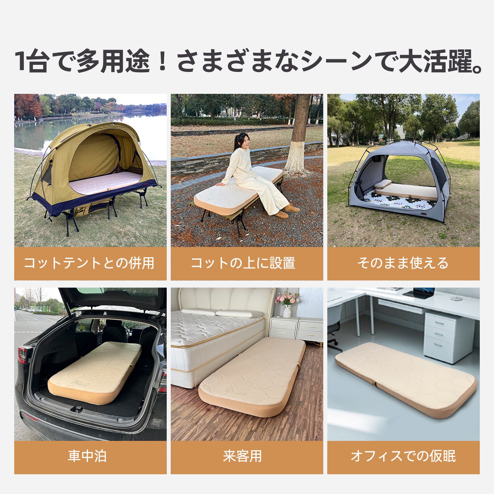 * 多機能性:コットやテントとの組み合わせが可能で、キャンプマットとしてだけでなく、来客用簡易ベッドや防災用品としても活躍。